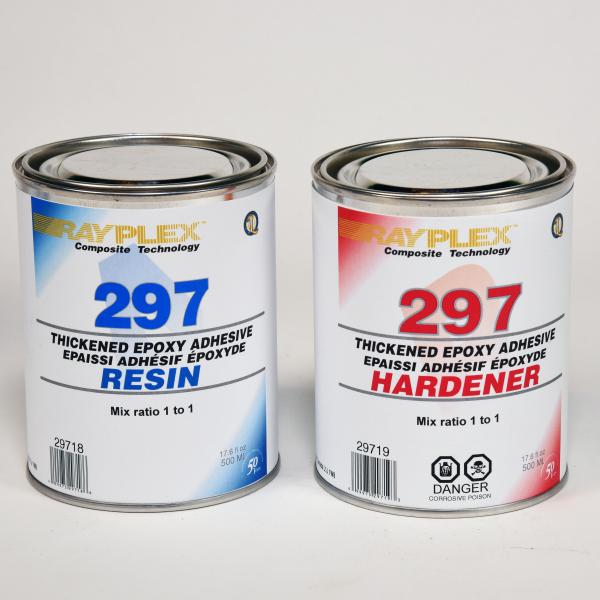 This is a toughened, versatile epoxy that is conveniently pre-thickened for permanent waterproof bonding of fiberglass, ceramics, metals, plastics, damp and difficult to bond woods. It is a bit more flexible then standard epoxies and polyester, but much stiffer than adhesive sealants. This gives our 297 Thickened Epoxy Adhesive the ability to make structural bonds that can absorb the stress of expansion, contraction, shock and vibration. It is ideal for bonding dissimilar materials.